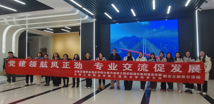 为深入学习贯彻习近平新时代中国特色社会主义思想、党的二十大精神和党的二十届三中全会精神,加强基层党组织建设,促进院校间党建与专业建设的深度融合,近日,学校工程技术学院党支部与云南交通职业技术学院公路与建筑工程学院造价教研室党支部开展以“党建领航风正劲,专业交流促发展”为主题的主题党日活动。