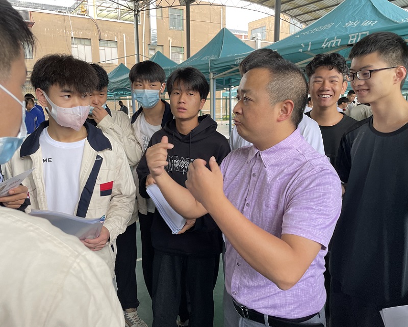 学校党委副书记张耀,工程技术学院党支部书记、院长张国强及其他党政领导、干部亲临双选会现场,并与用人单位和实习生进行深入交流,主动关心学生求职情况,充当学生简历的“诊断师”,鼓励学生大胆尝试,在实习实践中增长见识、练就本领、找准定位。工程技术学院党支部全体党员及教师深入挖掘企业资源,并主动承担起与到场企业的各项对接工作,积极配合企业与学生的洽谈。辅导员与就业创业指导员通过QQ、微信等“直播带岗”形式向未到场的部分学生推荐企业,着力帮助学生解决寻找实习单位面临的问题和困难。