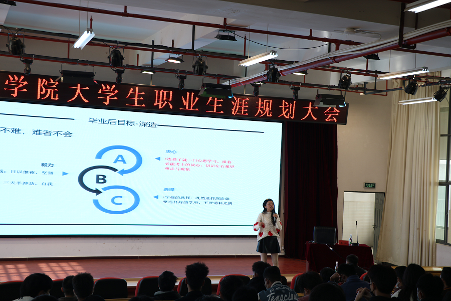 为了让2021级在校生能更好地进入职场,适应社会。工程技术学院党支部副书记李娜老师于2022年12月2日在B区阶梯教室三举行了主题为“规划精彩人生,打造锦绣前程”的职业生涯规划讲座。讲座内容主要从四个方面展开:毕业后的目标;自我定位;综合素质;自我推销。