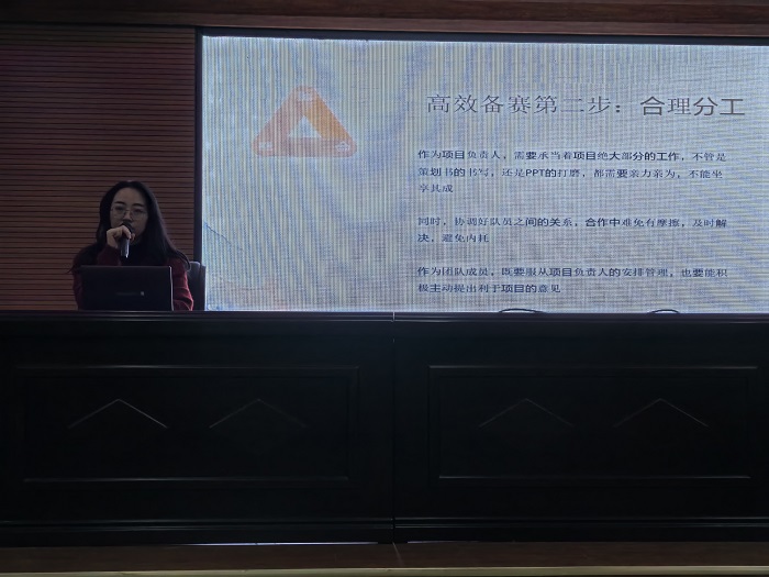 在讲座中,张老师提出了许多关于如何选择项目和如何高效备赛的建议,强调了培养学生综合素质的重要性。她指出,在选择项目时,应考虑参赛经验、专业相关度以及项目的“家族背景”等因素。而在备赛过程中,则需要明确团队成员的角色和任务,合理分工,注重项目计划书、PPT、演讲稿以及视频等方面的细节,并反复练习和不断优化。