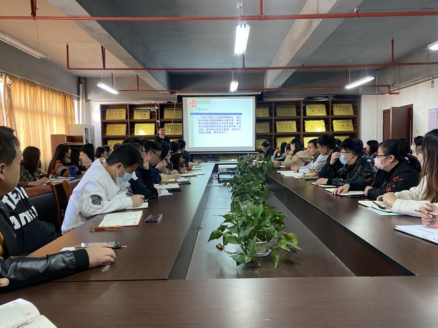 为进一步引导广大教职工树立正确的世界观、人生观、价值观,落实立德树人的教育任务,不断提高教师思想道德素质和教书育人的能力,加强对集团文化、团队文化的认同,规范教师的行为,打造高水平、高素质师资队伍。2022年10月17日下午,工程技术学院在A808会议室召开全体干部、教师行为规范培训会,此次培训会由张国强院长主持,全体教职工共同参与。