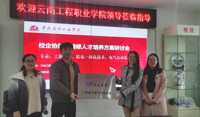 在全场嘉宾的见证下,云南工程职业学院工程技术学院教学副院长李娜与云南恒佳建设工程有限公司张总共同为 “工程造价产教融合教学实践基地” 揭牌,金色牌匾熠熠生辉,预示着双方合作正式启航。揭牌仪式后,双方明确未来将在多个领域展开合作。在人才培养方面,企业将为学生提供实习实训岗位,参与课程设计与教学指导;此外,还将探索 “订单式” 人才培养模式,为企业定向输送专业人才。